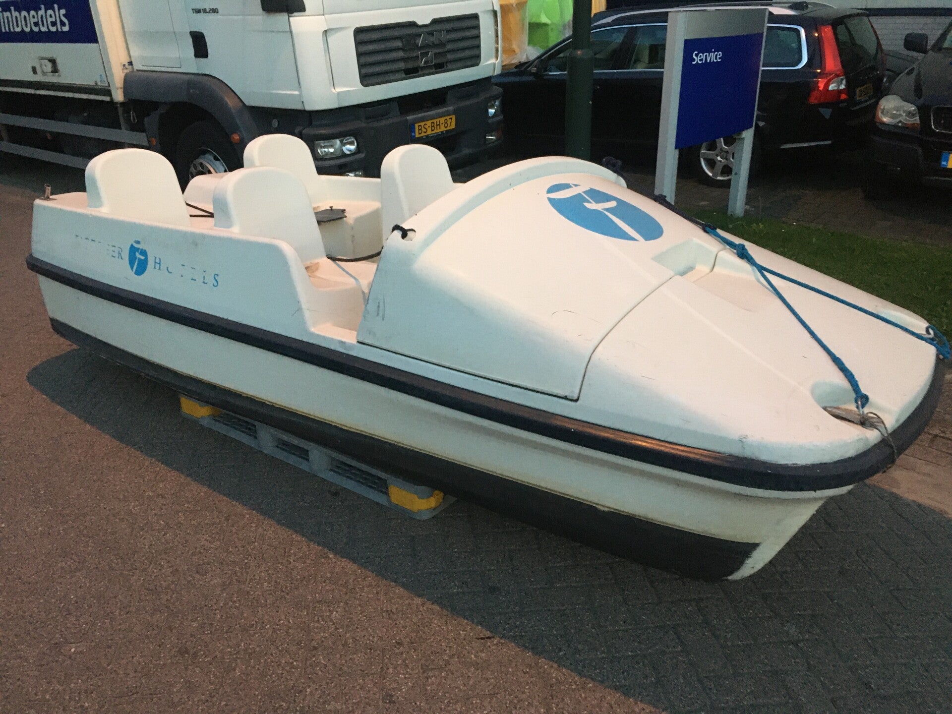 Deze waterfiets is geheel in orde en in zeer nette staat in de originele gelcoat (lak). Dit betreft een ex waterfiets van het Fletcher hotel.