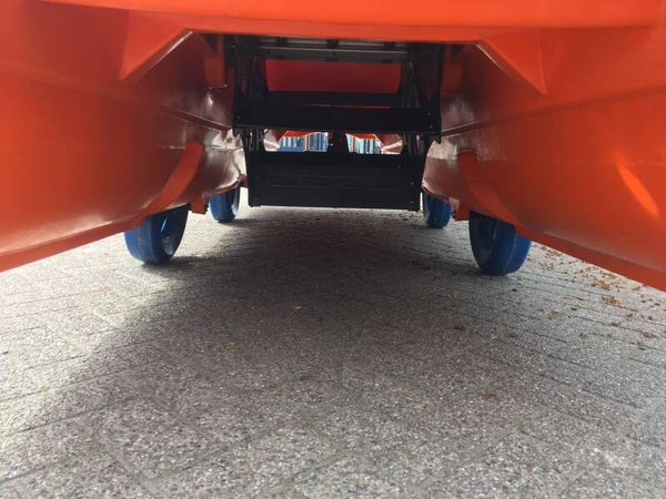 Rotatiegegoten polyethyleen waterfiets met roestvrijstalen en kunststof onderdelen waardoor geheel onderhoudsarm. Uv bestendig en zelflozend.